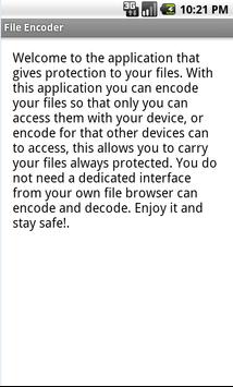 With this application you can encode your files so that only you can access them with your device, or encode for that other devices can to access, this allows you to carry your files always protected.