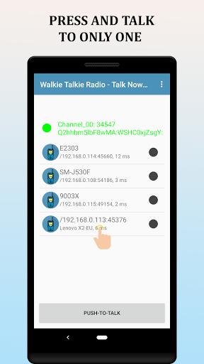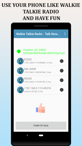 This application transmits the sound through the microphone to other devices that run the same application in the same network segment (WiFi) Internet connection not required, any router connected to the electrical network is valid, so it works as a walkie talkie radio. The recording is never saved!