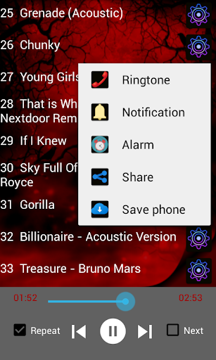 Listen Bruno Mars all songs. Play, pause and next button on lock screen. Set ringtone, alarm, notification Bruno Mars ringtones. listen all songs high quality music album and offline mp3.