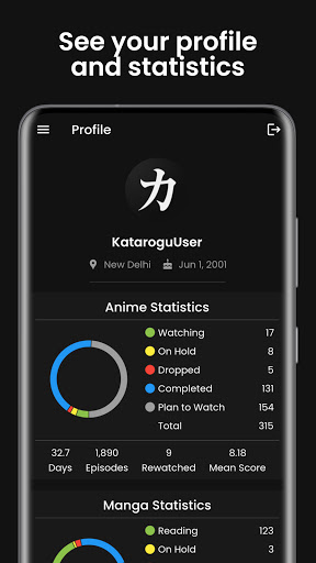 Katarogu is an unofficial client for myanimelist.net. Track your anime and manga progress with a dark, sleek, and smooth UI.