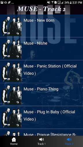 Aplikasi ini terdapat lagu-lagu dari grup band rock Muse grup band rock tahun 90-an yang masih exist hingga sekarang Grup Band yang berasal dari Teignmouth, Devon, Inggris banyak memperoleh penghargaan di dunia musik seperti grammy brit award dll.di aplikasi ini terdapat lagu-lagu terkenal mereka yang terdapat di dalam salah satu album mereka yaitu Black Holes and Revelations