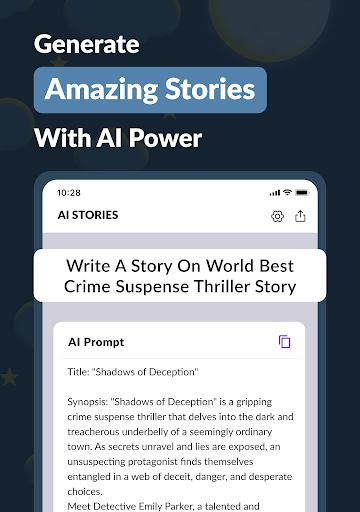 1. Endless Inspiration: The AI Stories Writer App serves as your virtual muse, offering an infinite well of inspiration. Whether you're suffering from writer's block or seeking new ideas, this app generates unique story prompts, characters, settings, and plotlines tailored to your preferences. Say goodbye to staring at a blank page, as this app kickstarts your creativity with its creative suggestions.