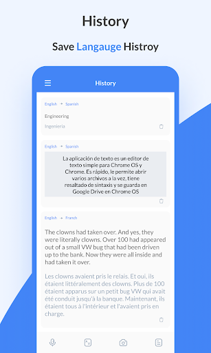 • Voice translator app keeps track of all your past translations in the history section. To see the results of previous translations, you can pick words or sentences from history that you have already translated