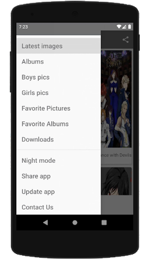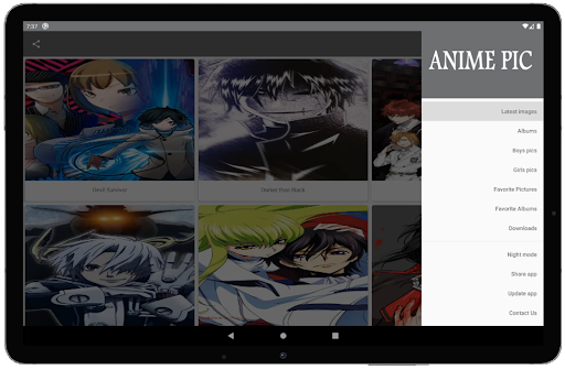Anime pictures application is the best application for anime pictures and wallpapers. It contains a large number of anime images and many sections. The application enables you to download images and set them as a background, and there is a special section for favorite pictures and a section in favorite albums. You can activate the night mode and many features that you can discover yourself.
