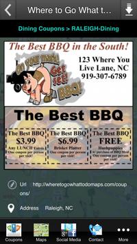 The ONLY coupon app dedicated 100% to LOCALLY OWNED SMALL BUSINESSES! The most preferred app for downloading reusable coupons. Unbelievable coupon savings for your favorite small businesses. Whether you are looking for restaurants, shops, entertainment, health and fitness businesses or essential services we have coupons for you! And they are all offered by SMALL BUSINESS OWNERS. The coupons are always at your fingertips everywhere you go. Every coupon we offer are reusable during the date they are valid. So use them over and over again until they expire. These coupons are not offered anywhere else. So stay up to date on the exclusive offers. New coupons added daily. Across the top is the easy to use navigation/search bar. The coupon categories are clearly displayed with an illustration icon. Across the bottom is the link back to the coupon categories, our Where to Go What to Do Maps, links to our social media and contact information and a more button. Use the search bar for easier navigating and to narrow down your search whether it be by category or city. You can even get as specific as a key word like “pizza”. You can even search exact company/business names. Searches can be narrowed by selecting a category you want to browse then enter the city of your choice. So if you want to know what coupons are available for dining in Clayton you select Dining on the main screen then enter Clayton in the search field and it will bring up all coupons for dining in Clayton. Take notice with each coupon it tells you the approximate distance you are from the location. This feature is available throughout the app as long as your locations services are turned on on your mobile device and you give the app permission to use this service. Location services are available under your setting on your mobile device. When you search our coupons it will automatically give you a geographical distance from where you are located at the time of your search. You can narrow your search by selecting the distance bubble tab located at the top of your screen. You choose the distance by entering the number in the distance field. This will only bring up the coupons available within the mileage you chose. You can also pin drop each coupon/business location on a map after you select the category you would like to view. All you need to do is select the tab with the world & pin drop at the top of your screen after you select your category. Now you can see how far you are from where you want to go and what the distance is between locations. When you view an individual coupon when you tap on the address provided it will automatically give you directions right to the businesses doorstep. You can also call them directly from our app as well as browse their website or Facebook page. Don’t forget to view our Where to Go What to Do Maps portion of our app. Where to Go What to Do Maps are a collection of point of interest maps in different areas that highlight small businesses. A printed version of these maps can be found at each of the businesses listed on the map. Under each map you can find information on each of the participating businesses. After selecting the maps tab located at the bottom of your screen the image to the left shows you all the maps we have published thus far. Select the city you would like to view. The first image that comes up is the actual map and the links to get to larger versions of the map for easier, clearer viewing. The following images are information on all our partners. We make it as easy as possible for you to save money at all the places you like to go! Download and start saving now!