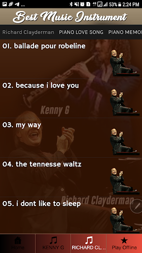 최고의 음악 악기 응용 프로그램은 음악 악기 마에스트로가 재생하는 피아노 및 색소폰 MP3 악기 응용 프로그램입니다. 피아노의 아름다운 음악 악기는 Richard Clayderman에서 연주하며 Kenny G가 연주 한 색소폰의 아름다운 음악 악기가 있습니다.