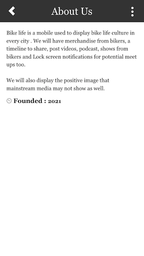 Bike life is a mobile app used to display bike life culture in every city . We will have merchandise from bikers, videos, podcast, shows from bikers and Lock screen notifications for potential meet ups too.
