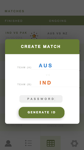 and also can invite rival team to add scores with same room ID and password .Every individual of your team and rival team can share same room ID and password to add their scores .Every new player will get 100 points for free,and to play a new match you have to use