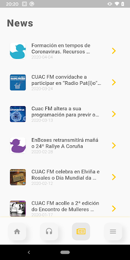 The app offers the possibility of listening to the online broadcast of CUAC FM, as well as listening to podcasts of the different programs of the station.