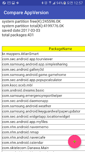 설치된 앱들의 버전을 추출합니다. 추출된 파일로 부터 앱 버전을 비교합니다. 시스템 앱의 파일 용량과 버전 변경 사항을 비교합니다.