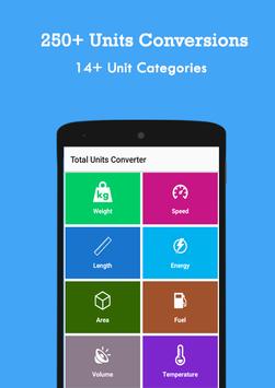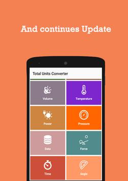 Total unit converter is a simple, smart and elegant tool with more than 14 basic categories of units are used in daily life. This is the only Total Unit Converter App in Google play store that has such a wide range of unit conversion features with very simple user interface and effective information of some special units