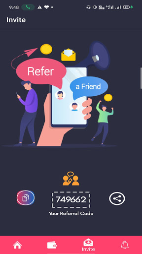 Apps by inviting your friends with invitation code through Facebook, Messenger, WhatsApp, Instagram, SMS, and other communication tools.