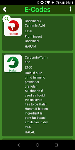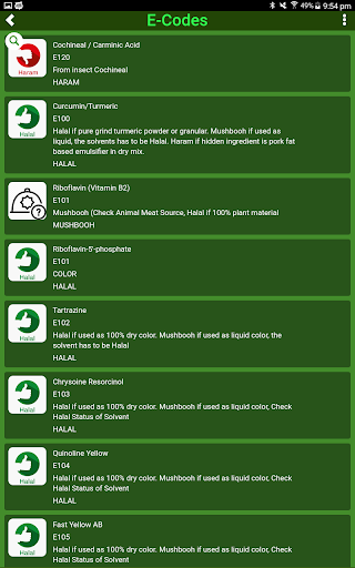 - A list of all e-Numbers / E-codes with complete description and status such as Halal, Haram and Musbooh.