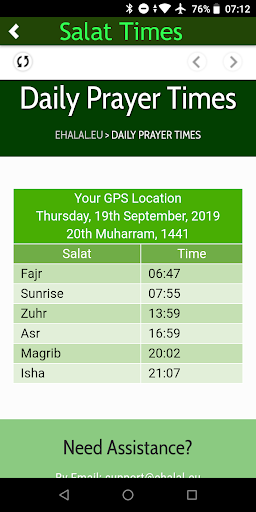 - Local prayer times Fajr, Zuhr, Asr, Magrib and Isha.