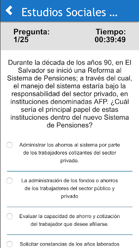 El equipo de desarrollo de Ediciones Servicios Educativos ha diseñado para ti una app para que puedas medir tus conocimientos y aptitudes en las materias de Lenguaje, Sociales, Ciencias y Matemáticas. En la app encontrarás exámenes con 25 preguntas aleatorias y que podrás resolver en un tiempo de 40 minutos. Semana a semana nuestro equipo incorporará nuevas preguntas para que puedas retarte. Recuerda que si algo no sabes, lo puedes encontrar en nuestros libros de texto. ¡Estudia con ESE y será un profesional de éxito en el futuro! ¡Saquemos 10 en la PAES!