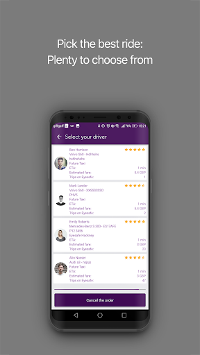 Smart Choices of different services by type, fare, distance and driver through multiple real time quotes,