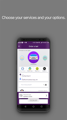 Choice with ease- Everything is possible through Eye Safe. Be the master of your choice,. When requesting your ride you can quickly choose your desired vehicle and service – MEye Eco, MEye XL, MEye Executive, MEye Taxi, Accessible, Child Seat, Dog Friendly, or MEye Lady.