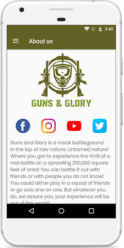 Guns and Glory is a mock battleground in the lap of raw nature. Untamed nature! Where you get to experience the thrill of a real battle on a sprawling 200,000 square feet of area! You can battle it out with friends or with people you do not know! You could either play in a squad of friends or go solo one on one. But whatever you do, we assure you, your experience will be out of this world!