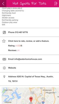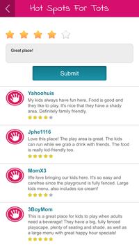 Hot Spots for Tots is the app you never knew you always wanted. It helps you navigate the world with children by providing family friendly places around you and telling you what kid-centric features these places provide. This essential information also comes with ratings and reviews of how kid-friendly these spots are from fellow caregivers just like you.