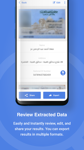 • Automatically Convert (OCR) your ID Card with an accuracy that reaches 99% for numerical information.