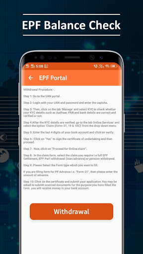 ✔ Know EPF Balance through SMS: App will send SMS to EPFO SMS service and get SMS with your EPFO details.