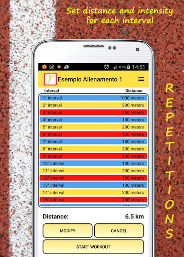 1 - Repetitions (intervals with distance): you can set the intervals indicating for each one of them, the distance and the intensity.