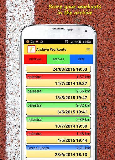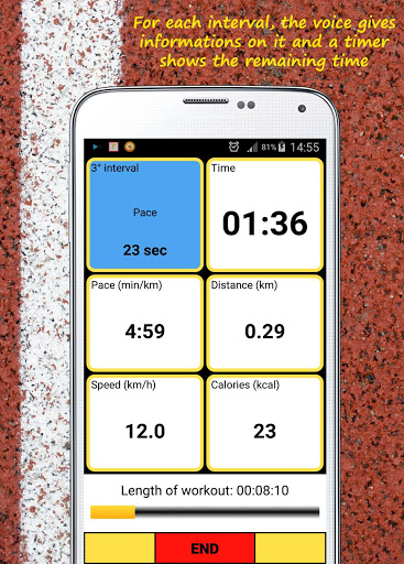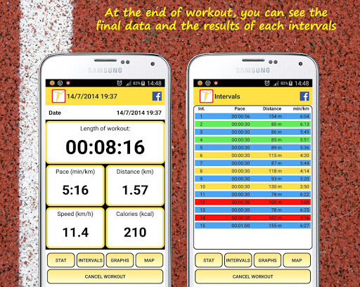 For each interval it will show distance, duration, speed and pace. You can analyze your performance on the charts of the speed and pace and you can see your path on the map.