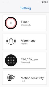 You can adjust the type of protection and alarm conditions as you choose either when you remove the charger or when you move the phone or when you pull the phone out of the pocket or the bus and you can choose more than one condition with some