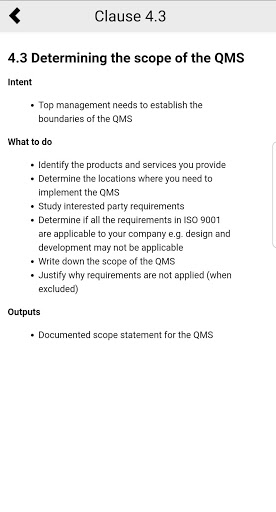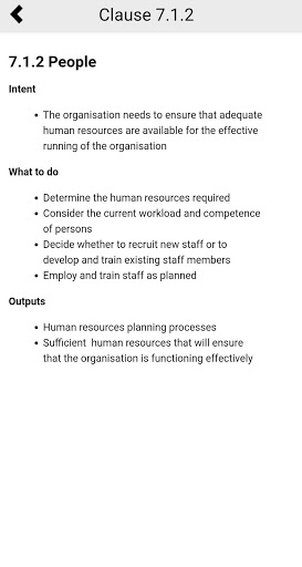 It explains the requirements of the different clauses and will help people to understand what must be done to comply with the requirements of the different clauses in the standard.