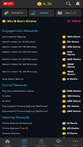 The more number of correct answers you give, the more iCoins you win and richer you get. Also, the longer you watch or play you get iCoins in a geometric progression. See our REWARDS / EARN section. For example, if you watch or play for 5 minutes you win 50 coins and for 10 minutes you win 100 coins. It is the ONLY streaming / gaming service that PAYS YOU for the time you spend. Similarly, iCoins are paid for playing games. You can play these games in two modes, A: PRACTICE and B: 1-ON-1. In PRACTICE mode you can play on your own and in 1-ON-1 mode you can play with an online opponent. In quizzes you can invite your friends to play. With every game you play, you also win iCOINS. The more games you win, the more iCOINS you earn.