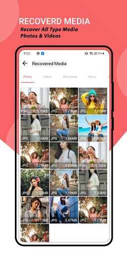 Recover deleted videos, undelete photos and restore deleted pictures using data recoivery app. Restore Files deleted audio, image, video, PDF and other various files like document and media file. Recover Deleted Videos and Audios using Data Recovery.