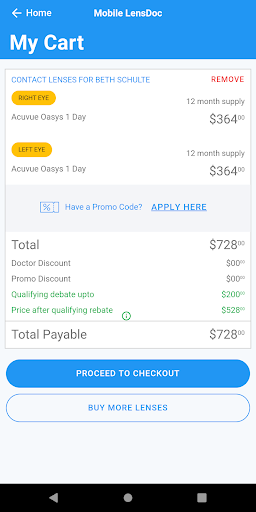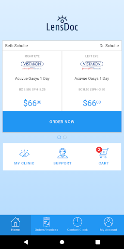 The Mobile Lens Doc Android APP is a revolutionary new mobile contact lens platform developed to provide the highest level of service for participating doctors' patients. Utilizing the new, patent protected, active verification process users will find their contact lens prescription loaded and ready upon arrival! No shopping for your prescription contact lenses here, no worrying about entering all those important numbers, no errors, and no waiting for your doctor to verify your prescription after entry. Its all there and waiting for you.