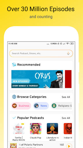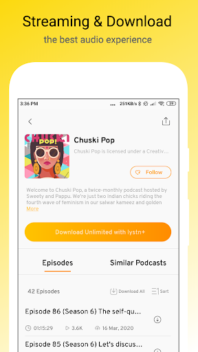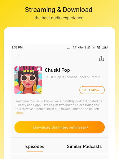 Whether you need to discover new podcasts in different categories (Bollywood podcasts, music podcasts, tech podcasts, economy podcasts, marketing podcasts, self-improvement podcasts, sport podcasts), or want to play all episodes from a podcast you know you will love, lystn is sure to help you.