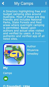 My Camps - the completely authenticate and verified directory and guide for camping, rest stops, tourist information centres, dog friendly sites, scenery locations, RV Friendly Sites, Toilets, Showers and Restaurants when travelling Australia which the author and team have visited and have verified. My Camps is your pocket tool for travelling OZ.