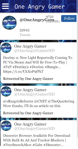 Stay up to date on the latest gaming news; find out what the newest screenshots are like for upcoming titles via our Instagram and Flickr posts, or check out trailers for highly anticipated apps, games, and movies through our Twitter and Facebook feeds. All of this brought to you through a convenient app where you can read and share news across all of One Angry Gamer's social media feeds right in the palm of your hands.