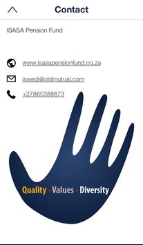 This mobile application has been developed by the Boards of Trustees of the ISASA Pension Scheme and Provident Fund to enable direct easy communication and provision of information to its more than 8000 active members.
