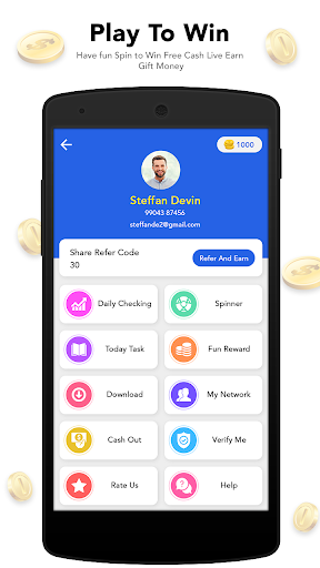 you will Also Refer Your Friends to Earn Extra Rewards in Spin & scratch To win cash