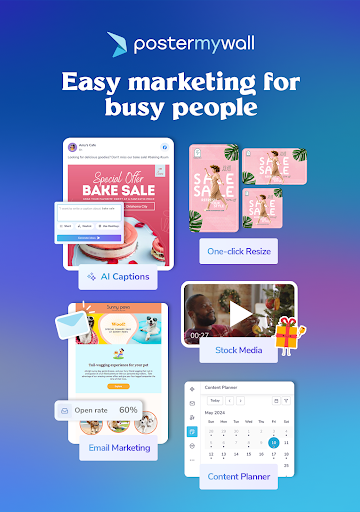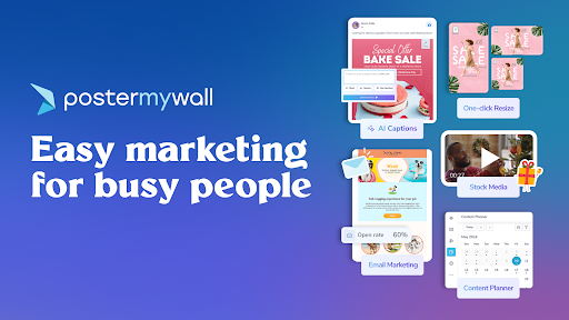 Power-up your marketing! ✨ PosterMyWall is an all-in-one marketing platform to create awesome designs, publish to social media, and manage email marketing. Make magic with our easy-to-use design editor and publishing tools. If you’re a small business, church, solopreneur, educator, non-profit, musician, or someone looking to promote your passion project - PosterMyWall makes it happen, fast.