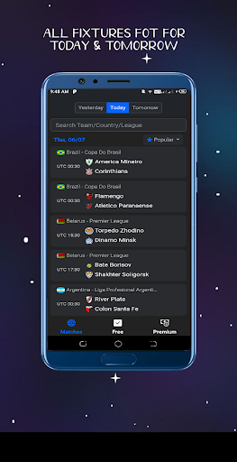 App has all fixtures, all world leagues for yesterday, today and tomorrow