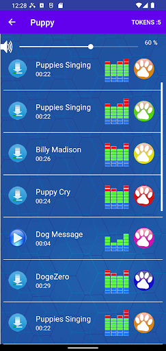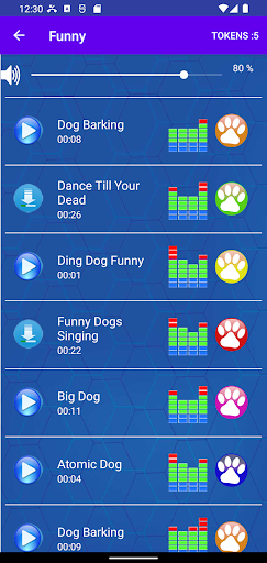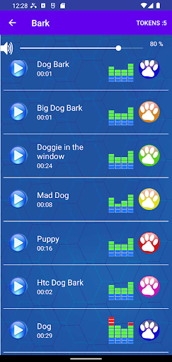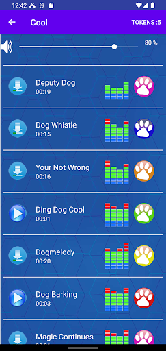 Open Dog Sound Ringtone app, you can press the " play " button to listen to the MP3 music tones.