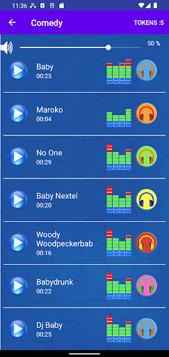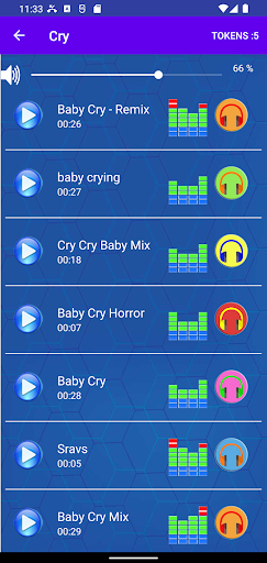 Open Baby Sound Effect and Ringtone app, you can press the " play " button to listen to the MP3 music tones.