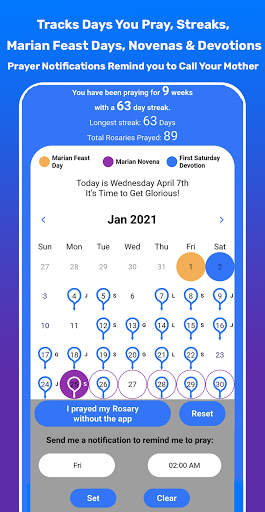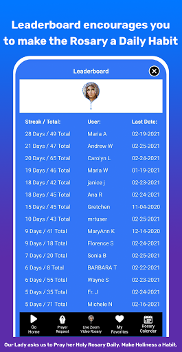 - Keep track of your Rosary prayer streaks as well as Rosary Leaderboard