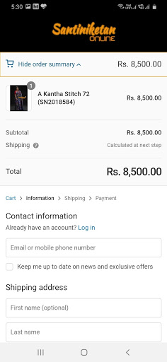 We are manufactured of Kantha, Batik, Tussar Ghicha, Khadi, Khesh Sarees from Santiniketan. We ship all over the world. Accept payments online & COD option are also available.