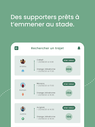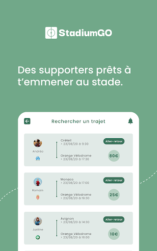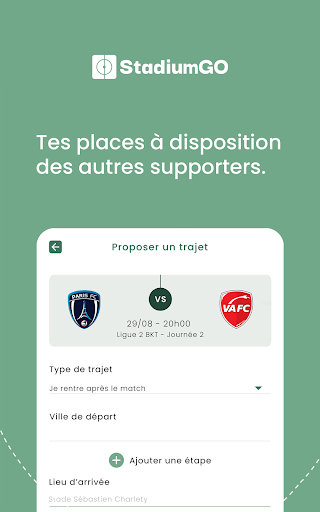 With StadiumGO, you share your trip with others fans to go to the stadium and follow your favorite team to all games. How it works ?