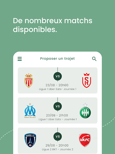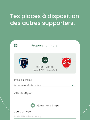 Choose your game, fill in the trip's details and share your ad. Now, just have to wait others fans for share your ride !