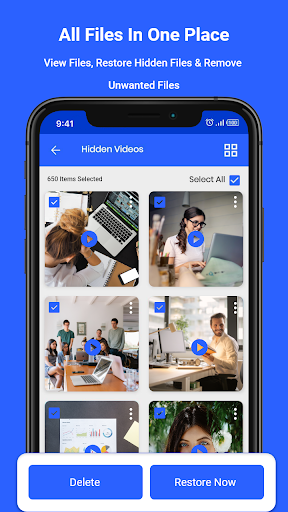 Delete all hidden and unwanted files, audios, photos and videos, recover and restore deleted files and media.