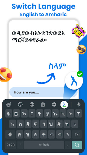Amharic English keyboard (አማርኛ ኪቦርድ) enables you to type Amharic and English with Amharic typing keyboard. Amharic Keyboard Ethiopia 2023 provides various cutting-edge features that can improve your writing.