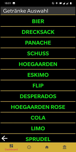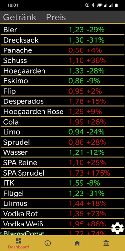 รายชื่อราคาที่แสดงอย่างต่อเนื่องแสดงราคาในตลาดหุ้นปัจจุบันของเครื่องดื่มทั้งหมดที่ซื้อขายในตลาดหุ้น