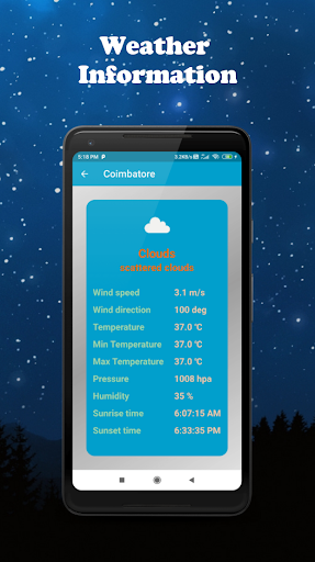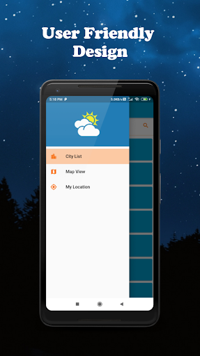 Application provides near by location and city based weather information