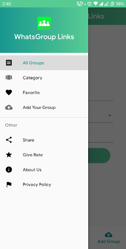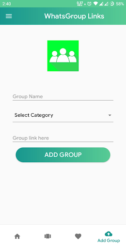 If you are a Group Admin and want to Share your Group Invite Link then you can do. You get the option "Add Your Group". After clicking on this option, you able to add groups to the app. You need to give or submit the Group Name, Select Category, and Group Invite Link.But Don't add sensitive groups links as Admin can verify those links